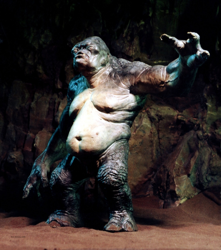 gorila, mas a cabeça parece de peixe. São anfíbios e possuem escamas e